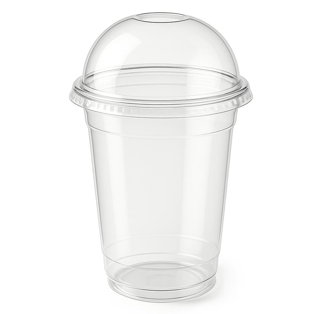 A clear, disposable PET Dome Lid with a central straw hole for our 12oz, 16oz and 20oz Disposable PET Cup making them perfect to-go cups for any cold drink with a whipped cream topping or ice-cream float. The Domed Lid helps seal the PET Cup for the prevention of splashes and spills. The lids are made of PET (Polyethylene Terephalate) which is both recyclable and shatter resistant.