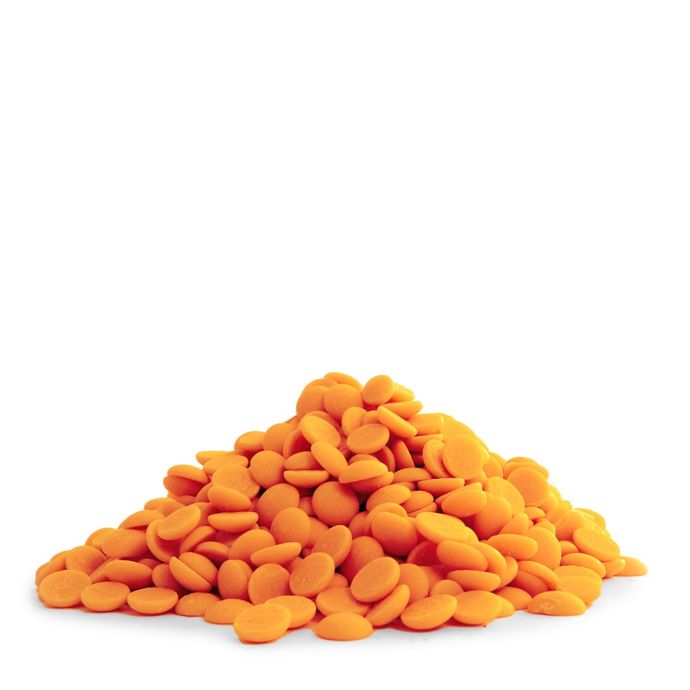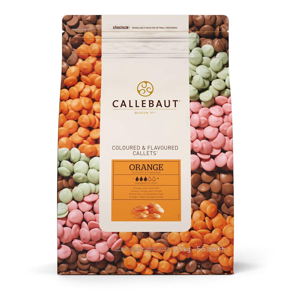 A: Callebaut’s Orange Flavoured Chocolate Callets have a warm orange colour and a bittersweet orange flavour, combined with the creamy, caramelly sweetness of Belgian white chocolate.
