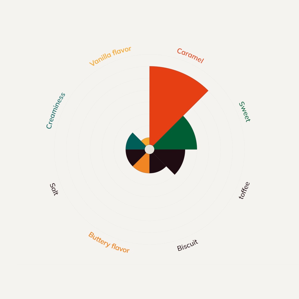 Intense yet well balanced caramel chocolate, with rich notes of toffee, butter, cream and an exciting dash of salt.