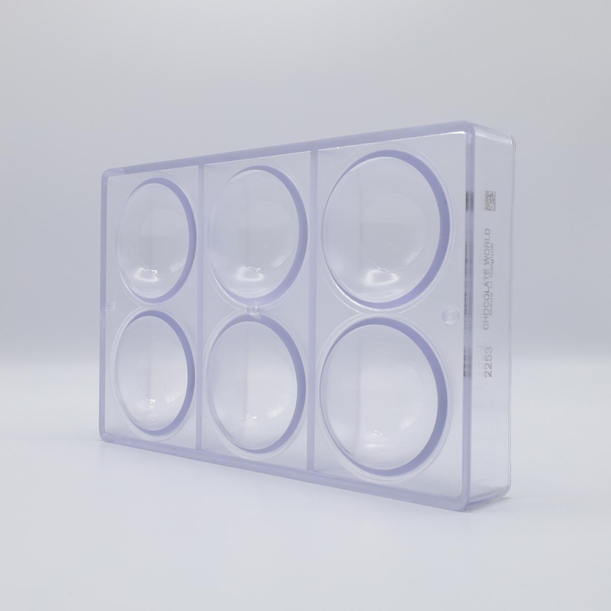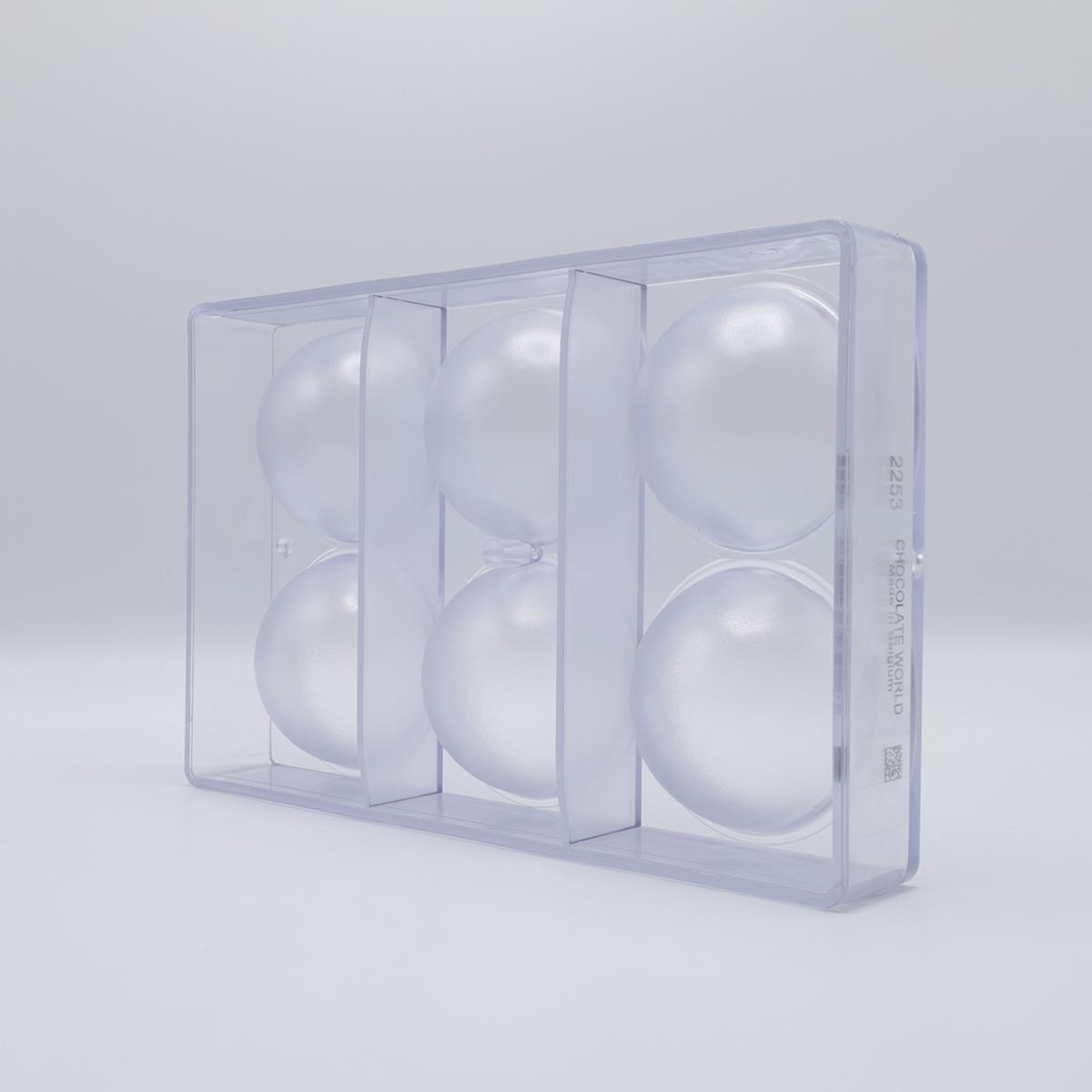 Made in Belgium from durable polycarbonate, the mould features a 2x3 cavity layout, producing 6 half spheres per batch.