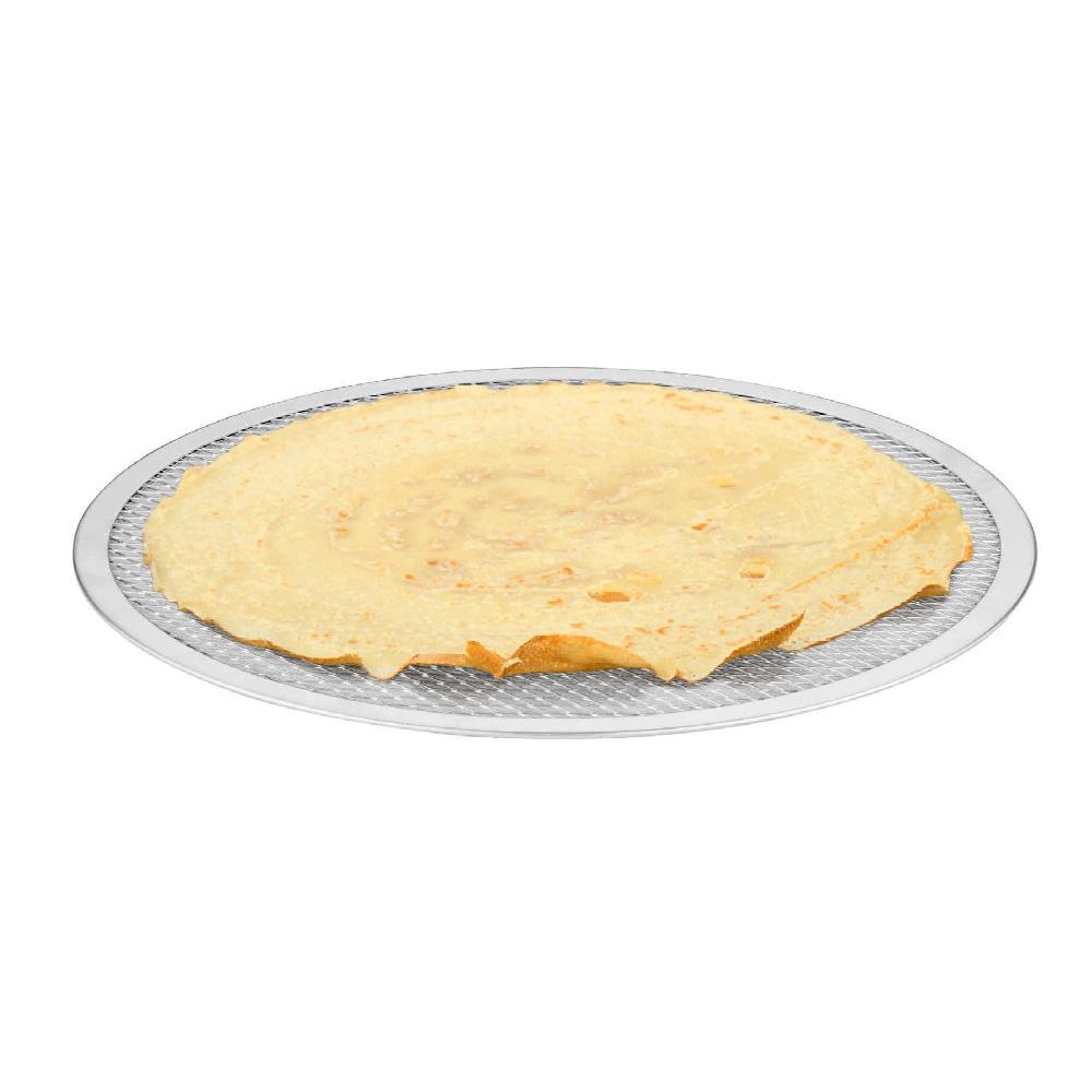With a generous 16-inch diameter and 3mm thickness, this tray provides ample space to cool down your crepes, pizzas, and a variety of baked goods. But it doesn't stop there - this versatile rack also doubles as a pizza oven or baking tray, making it an essential addition to your kitchen toolkit. Say goodbye to rust worries, as our Crepe Cooling Tray is designed to be anti-rust, ensuring it remains in prime condition even after heavy use. The stainless-steel rim adds extra stability and durability, ensuring your investment stands the test of time. Not just limited to crepes, this rack is perfect for cooling other food items like bread, loaves, or cakes. Its mesh design promotes efficient airflow, allowing your creations to cool down evenly, achieving the perfect texture every time.