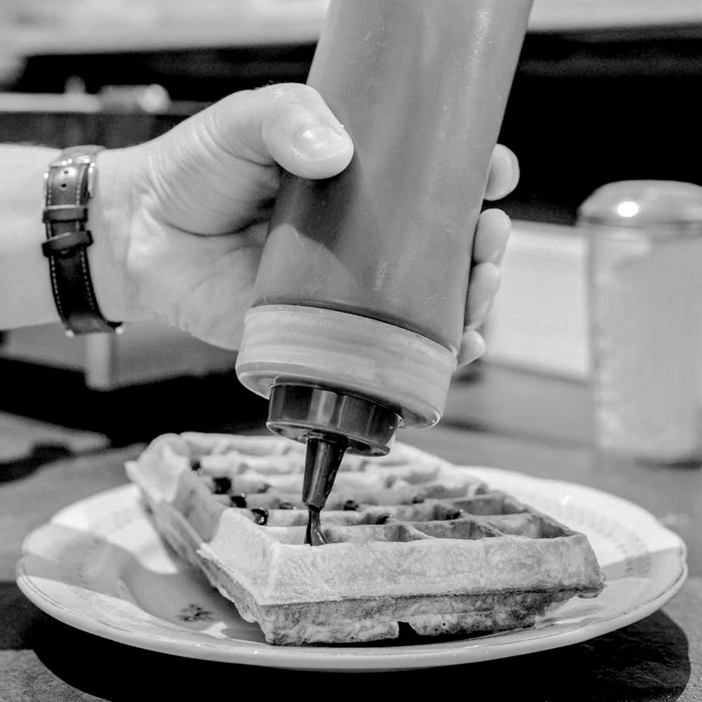 A: It is designed for precise application of thin sauces like melted chocolate, caramel, and syrups.