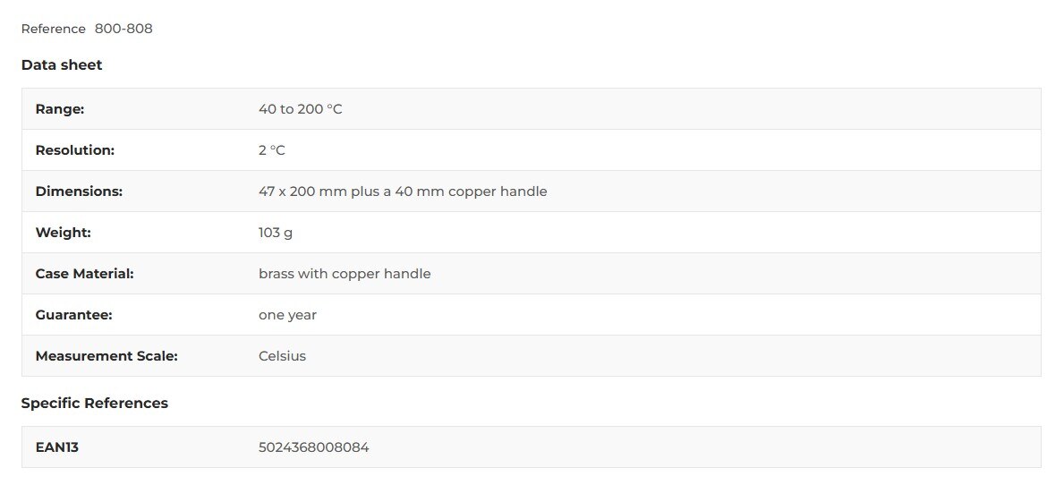 Whether you’re making homemade jam, perfecting caramel, or tempering sugar for sweets, this traditional Brass Sugar and Jam Thermometer gives you reliable and accurate readings every time. Designed for professional kitchens and serious home cooks, it’s built with a robust brass casing and a copper handle for long-lasting durability. With a temperature range from 40°C to 200°C, this thermometer covers everything from gentle warming to high-heat sugar work.
