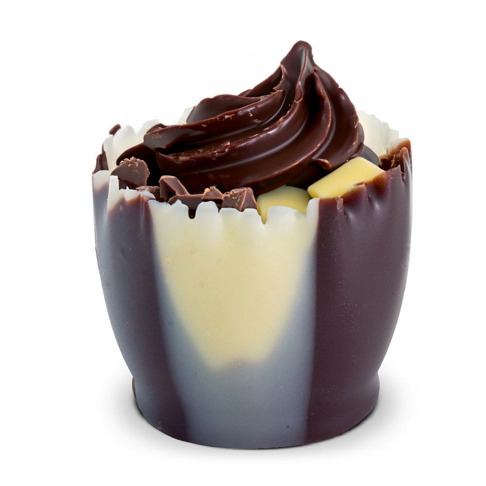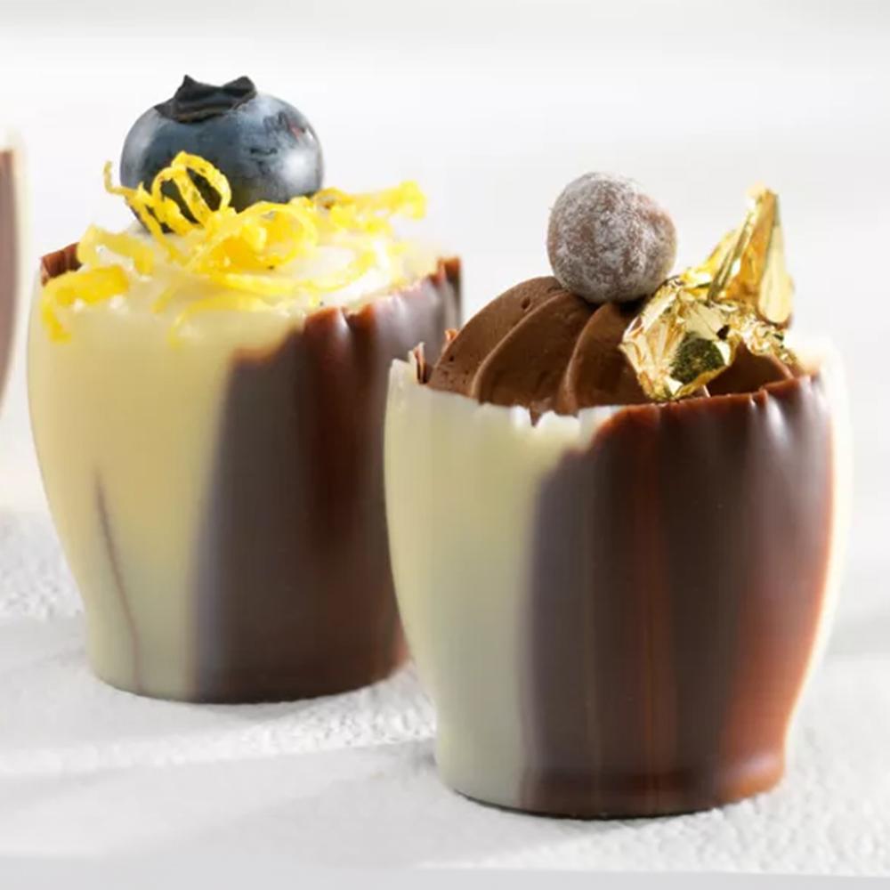 If you love a bit of contrast in your dessert presentations, you will definitely love the Snobinettes Marbled. Made of a mix of Callebaut® dark and white chocolate, these miniature petit four-style cups have a lovely bite, a great taste and artisan looks. No two cups are the same.
