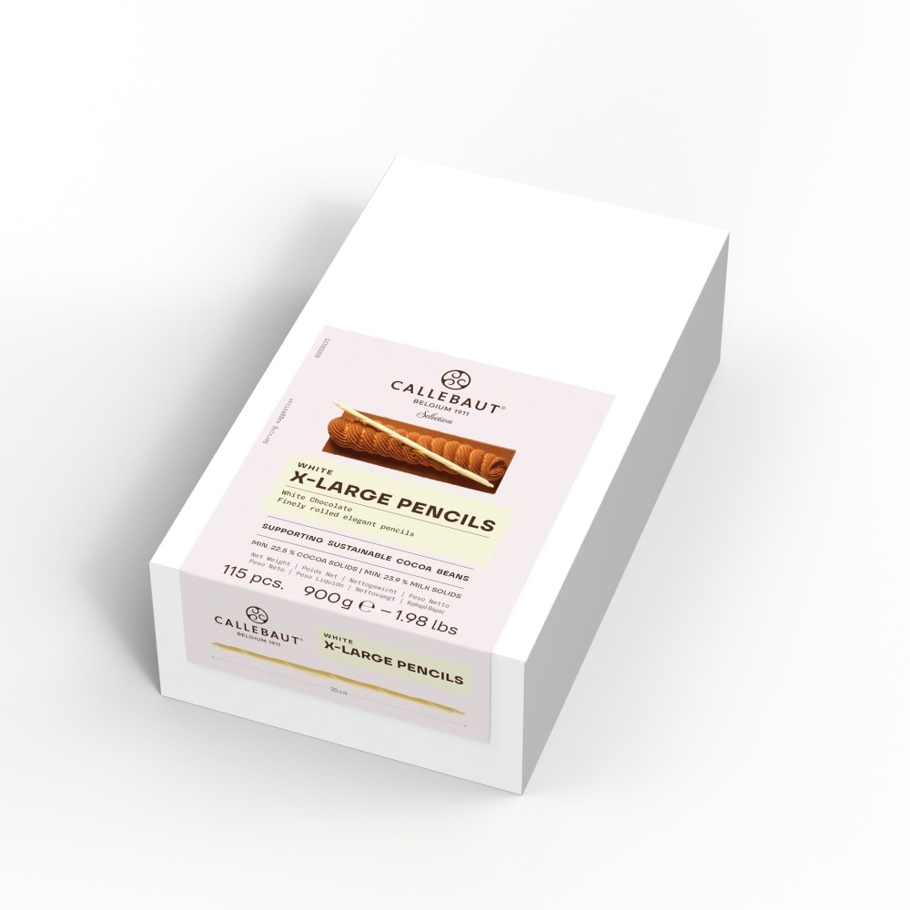 You're on a roll with Callebaut Rubens White Chocolate Pencils. Made with Belgian chocolate, they have a nice satin gloss and a creamy white colour. Their subtle snap and creamy, caramelly chocolate taste make them perfect for snacking and for decorating your cakes and desserts. Their delicately crafted, artisan look and generous length, enable you to instantly create an eye-catching and elegant chocolate finishing touch.