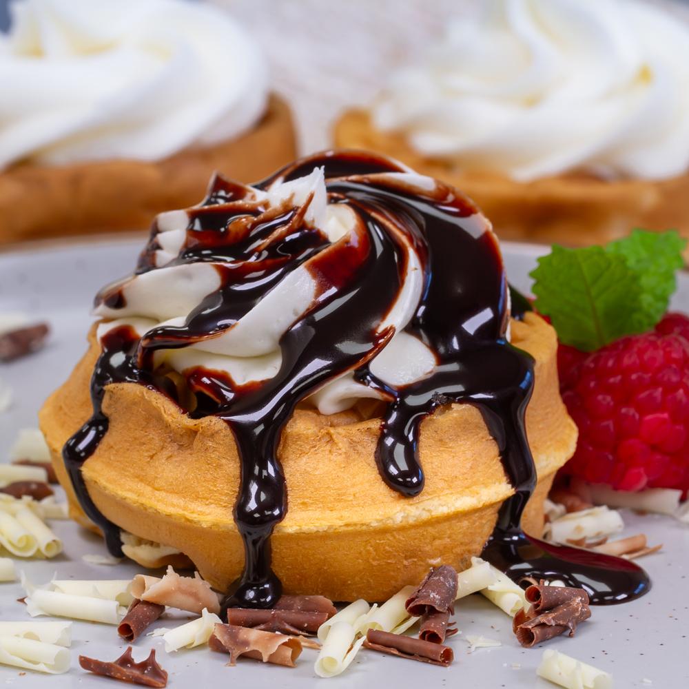 | Top pancakes, waffles or ice cream | Dark Stack – Waffles with bananas, dark chocolate drizzle and caramelised nuts. |