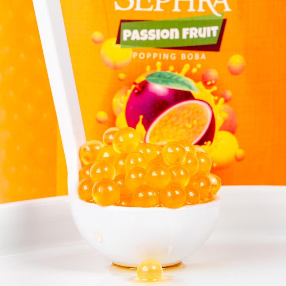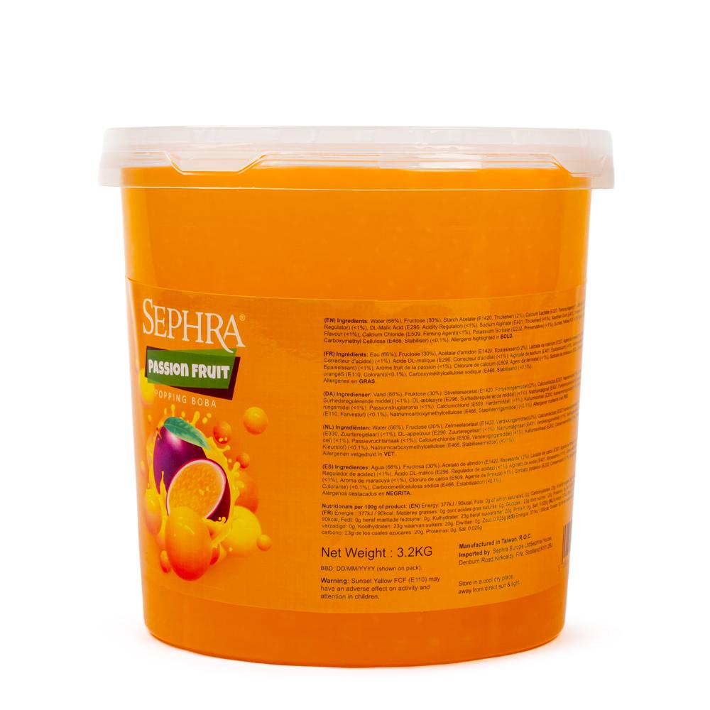 Sephra Passion Fruit Popping Boba are little pearls of tropical goodness that burst in your mouth with fruity passion fruit flavour. Sometimes called passionfruit boba, they’re lighter and juicier than chewy tapioca pearls, and they’re ready to go straight out of the pack. Perfect for bubble tea, iced drinks and desserts that need a tropical twist.